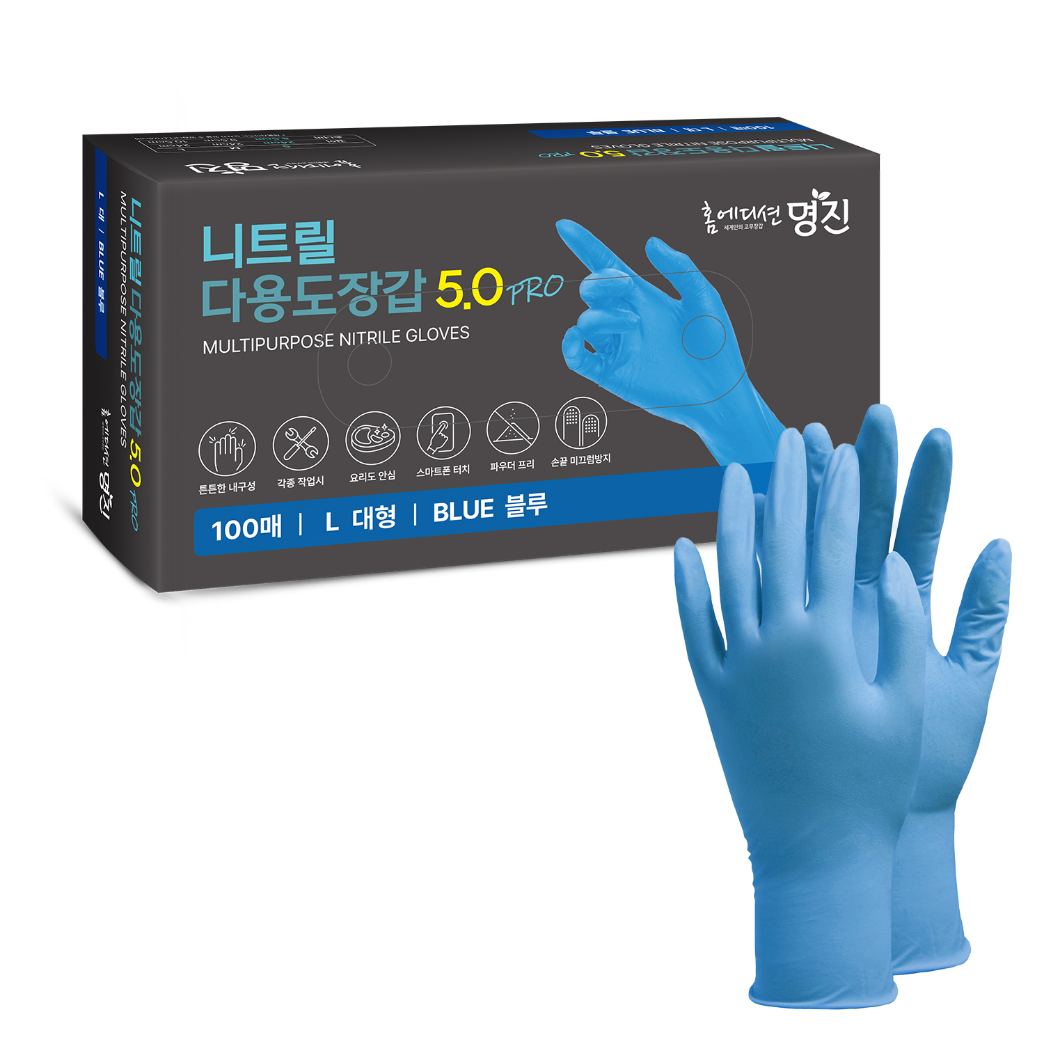 명진 니트릴장갑 PRO 5.0 100매 블루